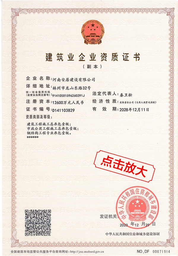 滔滔黃河哺育了中華民族拼搏向上的奮斗精神,巍巍太行造就了中原兒女的紅旗渠精神。百萬林州人下太行,鑄就了中國建筑之鄉(xiāng)響當當?shù)囊燮放啤:幽习簿咏ㄔO(shè)有限公司從誕生起血液里就流淌著紅色基因,秉承“安得廣夏千萬間,大庇天下寒士俱歡顏”的擔(dān)當精神,用鋼筋混凝土筑起了高樓大廈,也用一流品質(zhì)、家國情懷打造了安居建設(shè)的輝煌成績。公司成立于2012年,注冊資金12600萬元,公司成立至今,擁有建筑,市政施工總承包等十項一級資質(zhì);其他二級等資質(zhì)共二十余項。公司秉承質(zhì)量第一,服務(wù)為主,堅持垂直管理,從不設(shè)立分公司等分支機構(gòu)。